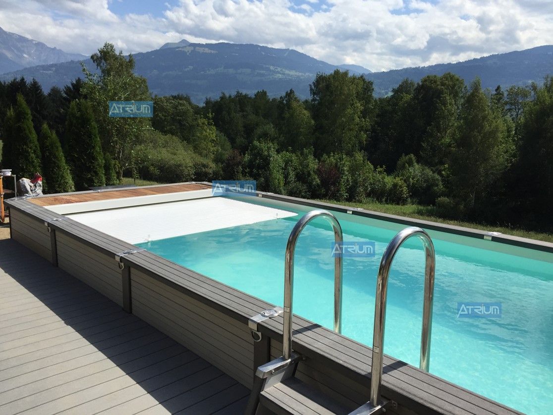 Cette forme présente l'avantage indéniable de vous offrir la possibilité d'installer un volet de sécurité, soit hors sol et posé sur vos margelles, soit immergé dans la piscine et donc invisible.